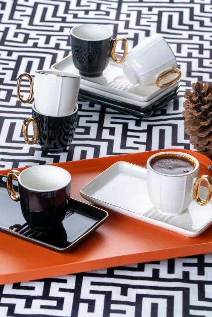 Fincan takımı siyah ve beyaz olmak üzere iki renkten oluşmaktadır.