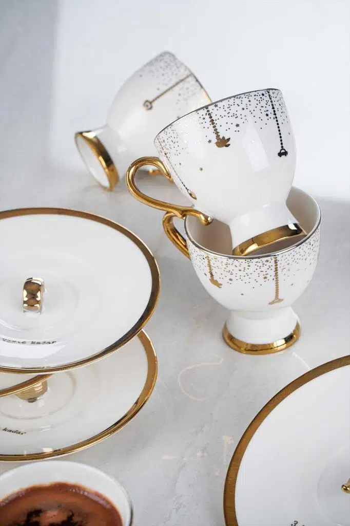 Acar 3 Vakte Kadar 6 Kişilik Porselen Fincan Takımı - Gold