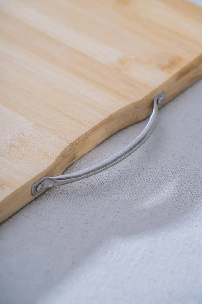 Metal kulp detayı taşıma kolaylığı sunarken aynı zamanda duvara asılabilir pratiklik kazandırır. Sebze, meyve, peynir ya da atıştırmalıklar için hem hazırlık hem sunum tahtası olarak ideal.