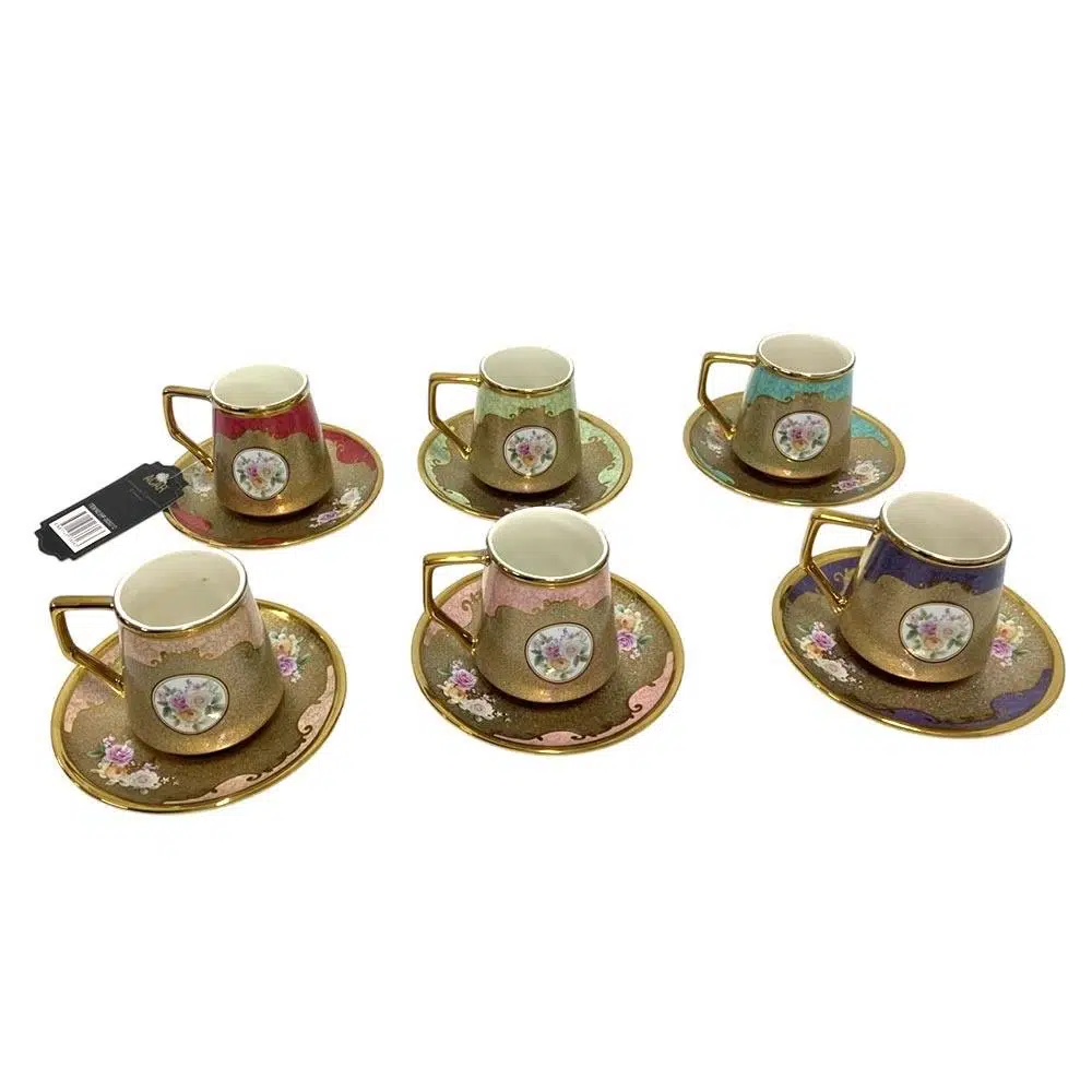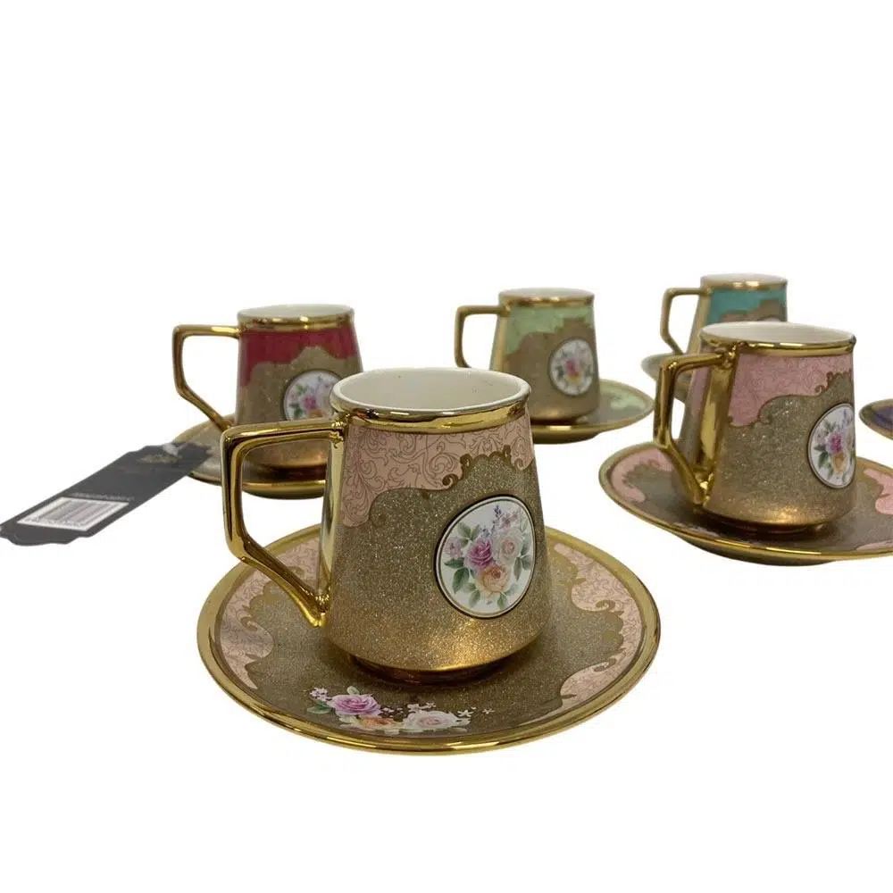 Acar Stellan Karışık 6 Kişilik Porselen Kahve Fincan Takımı - 90 ml