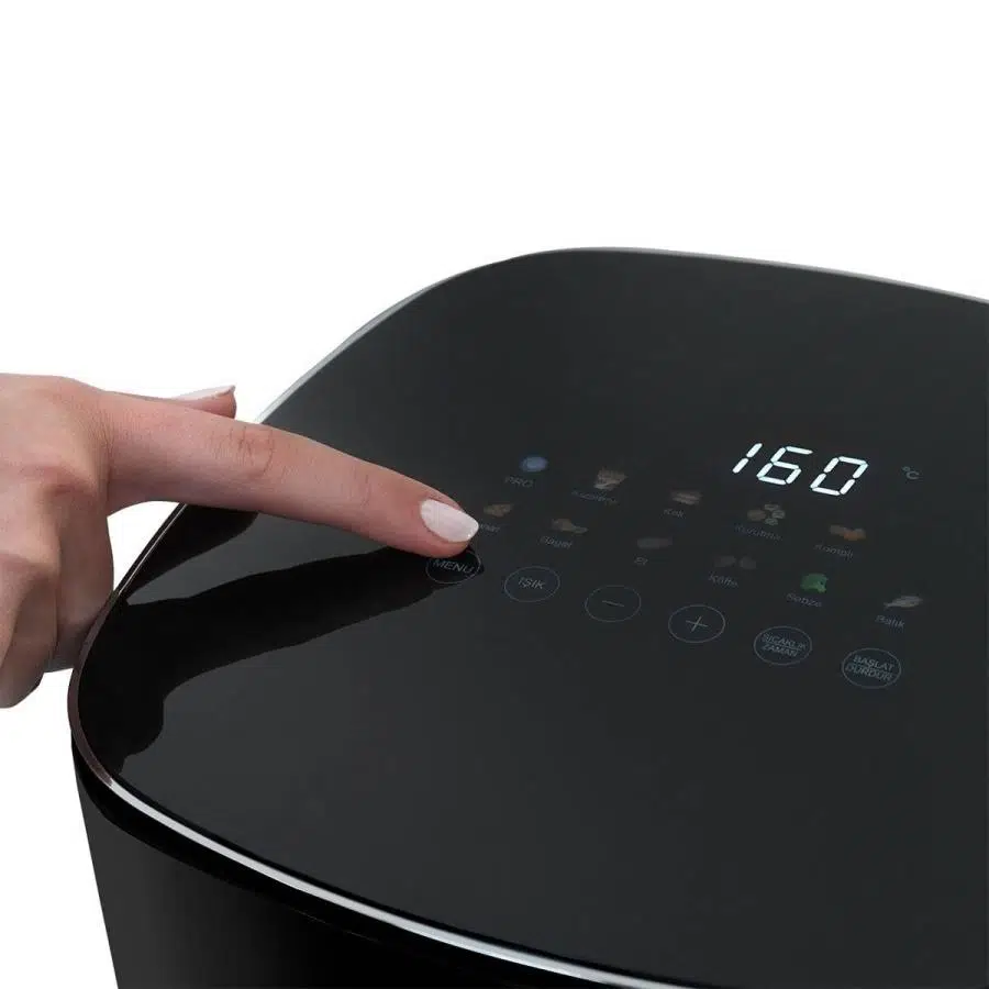 Bu AirFryer, mutfakta profesyonel bir aşçı gibi hissetmenizi sağlayacak 12'si 1 Arada Ön Ayarlı Menü seçeneği ile öne çıkıyor. Tavuk, biftek, patates, sebzeler gibi çeşitli yemeklerin yanı sıra pizza gibi daha özel yiyecekleri de kolayca hazırlayabilirsiniz. Bu menü ayarları sayesinde, yiyeceklerinizi en uygun sıcaklık ve sürelerde pişirebilir, mükemmel sonuçlar elde edebilirsiniz. Aynı zamanda, bu özellik zamandan tasarruf etmenizi sağlarken, yemeğinizin her zaman en iyi şekilde servis edilmesine olanak tanır.