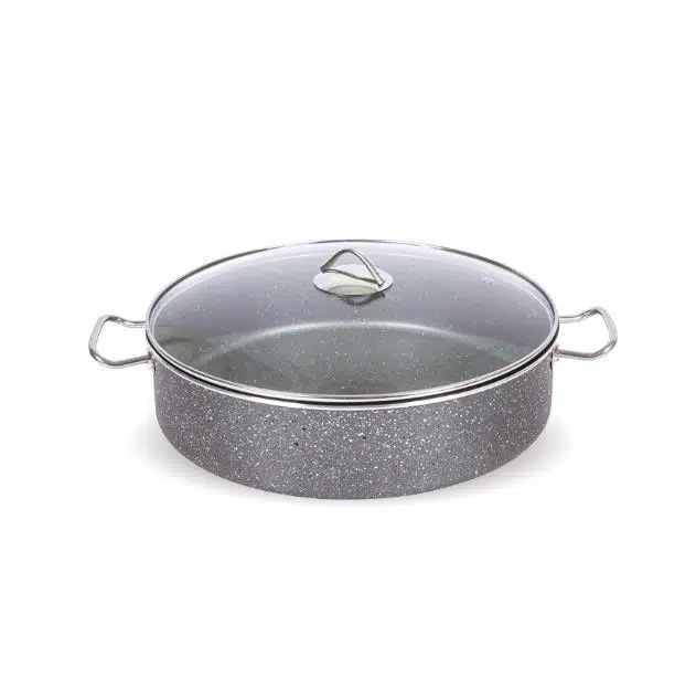 FMS 36 Cm Cam Kapaklı Granit Pilav Karnıyarık Tenceresi Gri |