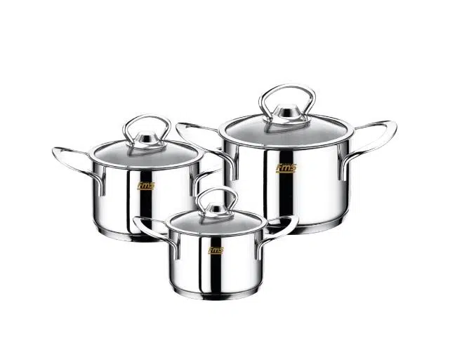 Fms 3'Lü Pera Mini Çelik Tencere Seti- 5024En eski markalardan biri olan FMS çelik tencereler 304 kalite üstün Alman çeliği ile üretilen 18/10 Cr Ni Ömür Boyu Paslanmazçelik tencerelerin dayanıklılık ve kullanışlılığını şık bir tasarım ile birleştiriyor.Yiyeceklerin vitamin ve mineral değerlerini kaybetmeden pişmelerini sağlayan Çelik gövdesi sayesinde uzun yıllar boyunca lezzetli,sağlıklı yemekler yapmak için kullanabilirsiniz.Set İçeriği