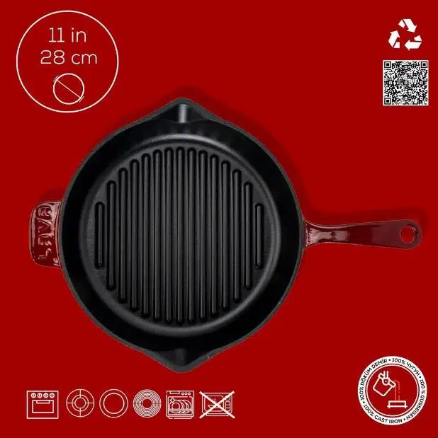 | Etiketler | Lava Demir Döküm Yuvarlak 28 cm Izgara Tavası Bordo |