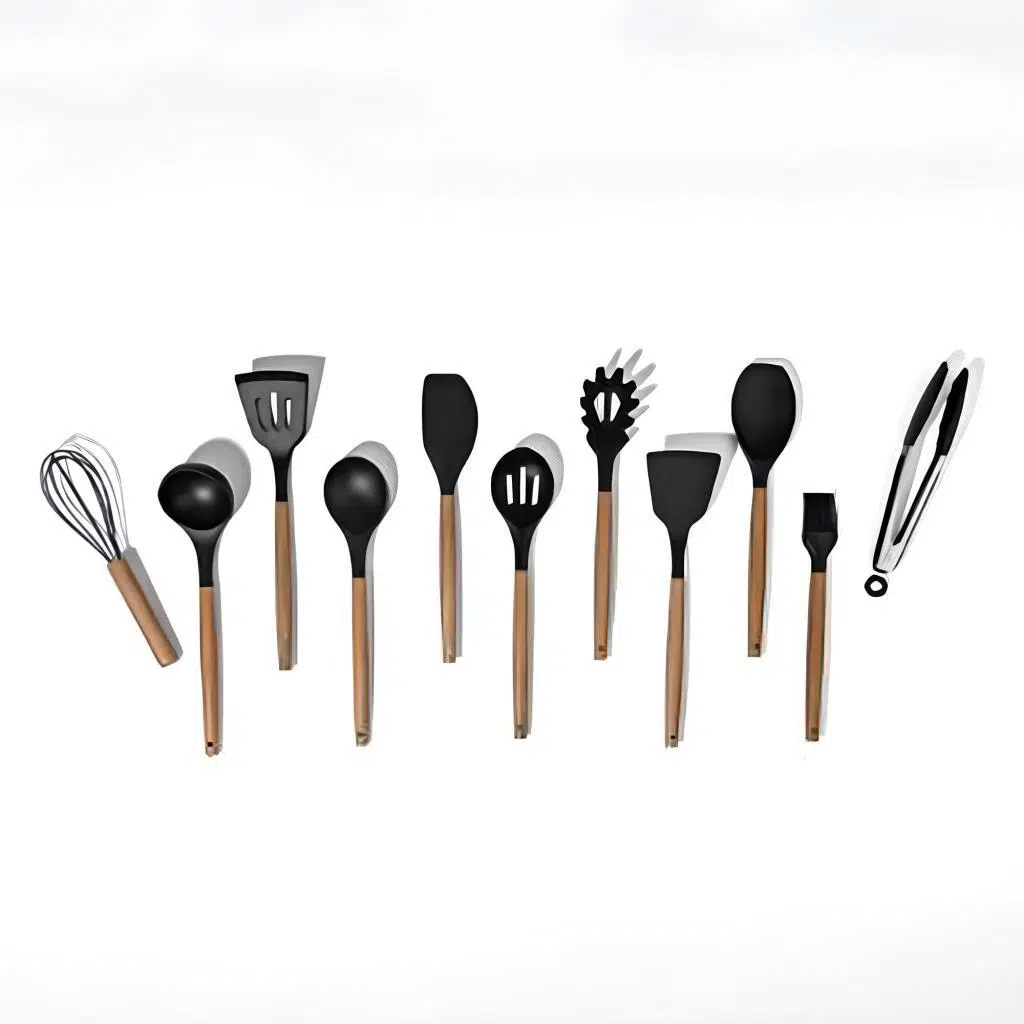 Angela Ahşap Silikon 12 Parça Servis Takımı, mutfakta ihtiyacınız olan her aracı bir arada sunan şık ve fonksiyonel bir settir.