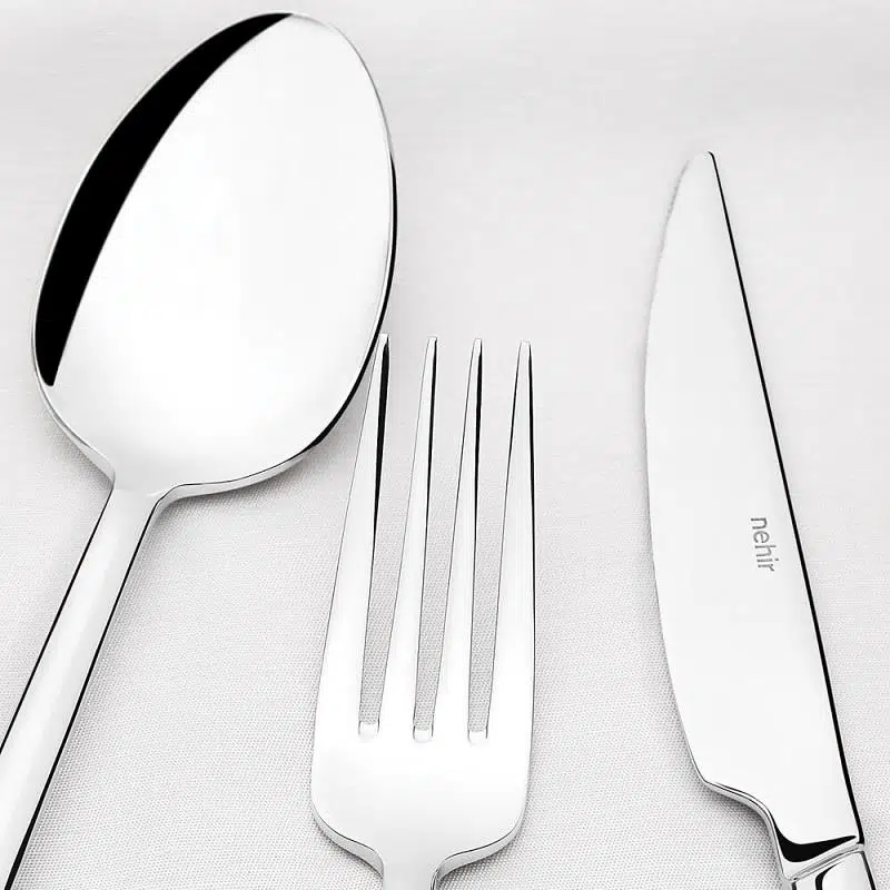 * Tüm Nehir çatal kaşık bıçak takımları 18/10 Cr-Ni paslanmaz çelik kullanılarak üretiliyor.
