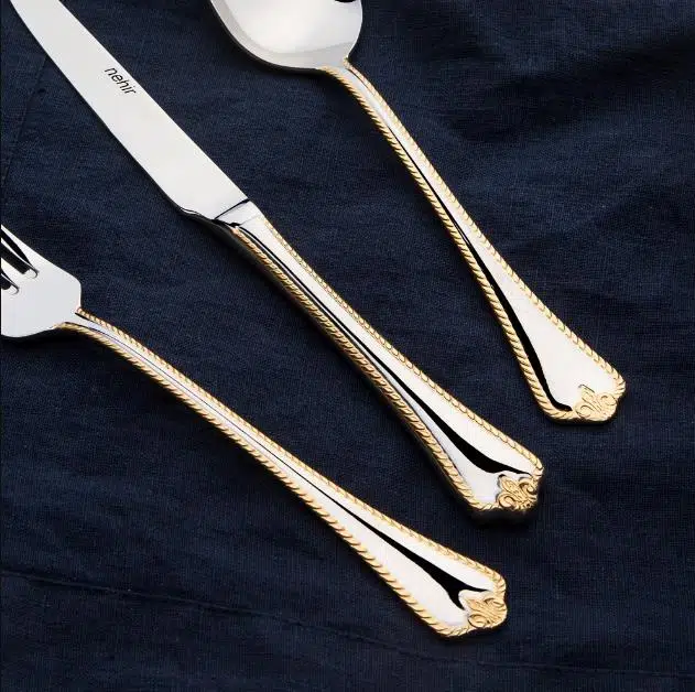 | Etiketler | Nehir Fulya Altın Sade 36 Parça 6 Kişilik Bıçaklı Çatal Kaşık Seti |
