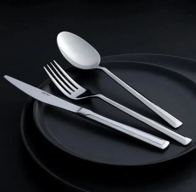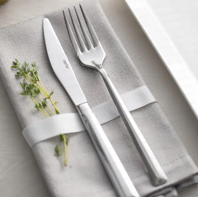 * Tüm Nehir çatal kaşık bıçak takımları 18/10 Cr-Ni paslanmaz çelik kullanılarak üretiliyor.