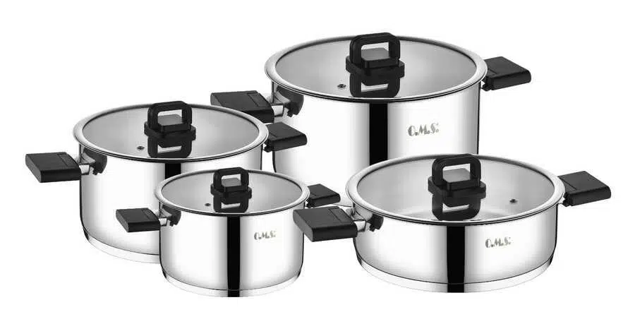 OMS Collection 8 Parça Katlanabilir Saplı İndüksiyon Taban Çelik Tencere Seti (1150 – Gümüş)