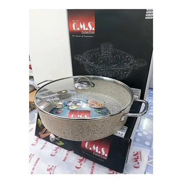 OMS Granit 34x9,5 CM Pilav Tencere Metal Çerçeveli Cam Kapaklı