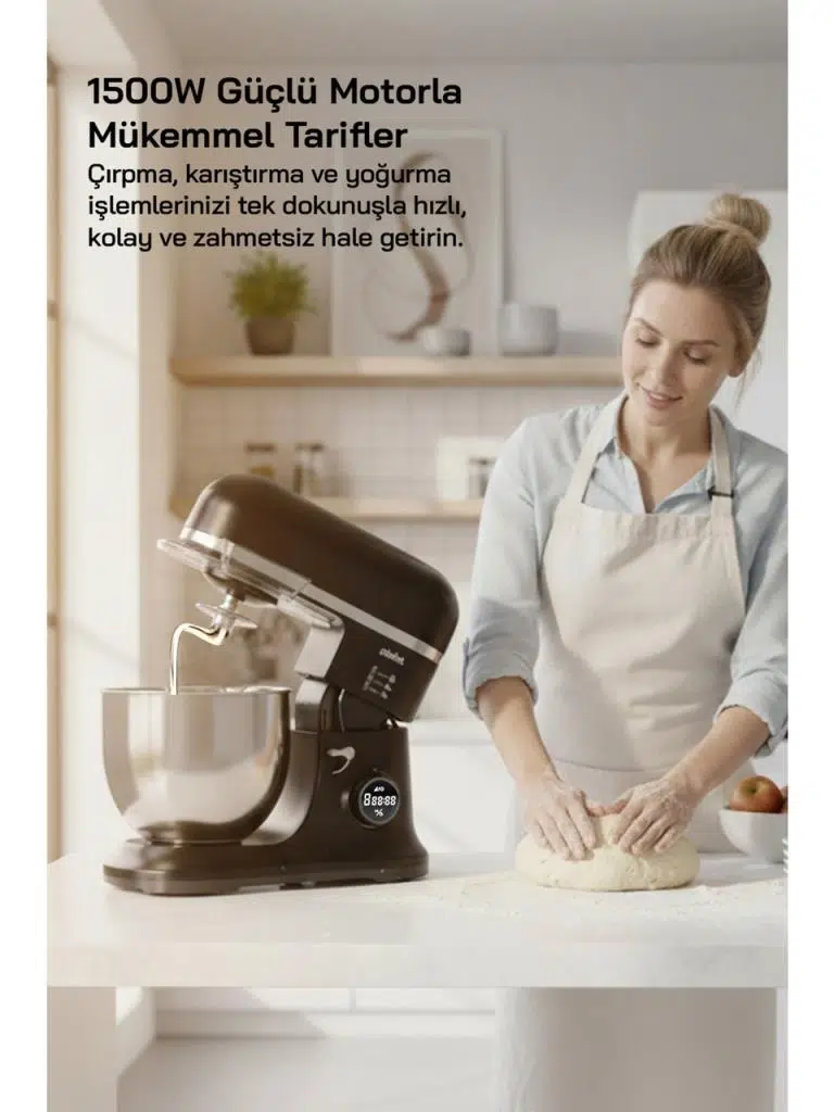 3 farklı karıştırma aparatı (çırpıcı, yoğurucu, karıştırıcı)