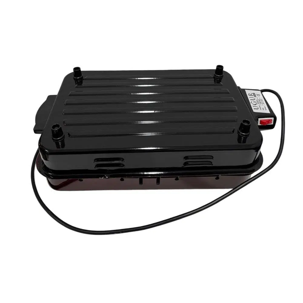 Marka -Uğur ; Uğur marka telli, ce emaye kapaklı ızgara. ; Lezzetli yiyecekler pişirmeniz için tasarlanmış ; Alt hazneye konulan su sayesinde extra lezzet katar ; Güçlü rezistans. ; Paslanmaya karşı emaye kapak. ; Sıkıştırmalı çift kat krom kaplı ızgara teli ; Geniş kapasiteli iç hacim sayesinde zaman ve enerjiden tasarruf edilmektedir. ; Izgara ölçüsü : ; Yükseklik : 16 cm ; Genişlik : 49 cm ; Derinlik : 27 cm ; Isıtıcı w : 1400 w ; - 220-240 volt ; - 50/60 hz ; -ürünümüz en 60335-En60730-1 ve en50081-1 standartlarına uygun olarak üretilmiştir ; -güçlü tel rezistans. ; -açma/kapatma düğmesi ; -yerli üretim. ; -180 derece açılabilen kapak ve çift taraflı durabilen sabit ayaklar. ; -el yakmayan tutamak. ; -alt tepsi su haznesi ; -ürünle birlikte ızgara teli gönderilecektir. ; -emaye tepsiyi dilediğiniz yerde kullanabilirsiniz. ; -yanmaz, yapışmaz, paslanmaz.-dumansız ızgara. ; -pişirilen yiyecekler içindeki suyu muhafaza eder. ; -bulaşık makinasında yıkanabilir alt emaye tepsi ve ızgara. ; -kolay taşınabilir. ; -et, balık v.B. Ürünleri evinizde, iş yerinizde istediğiniz zaman mangal yapabileceksiniz ; -kömür is ve duman derdine son. ; -pişirme üstten olduğu için duman ve koku olmaz. ; -kapaklı olması nedeniyle ızgaralar mükemmel pişer, lezzetini tam olarak korur. ; -ürünümüz 2 yıl garantilidir.-. ; Not: Emaye olan ürünümüz ısıyı korur ve muhafaza eder, pişirilen ürünlerin daha uzun sürede taze ve sıcak kalmasını sağlar. ;