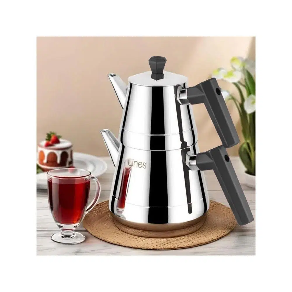 Yonca Lines L-3065 Piramit Aile Boy Çelik Çaydanlık Bakalit Siyah